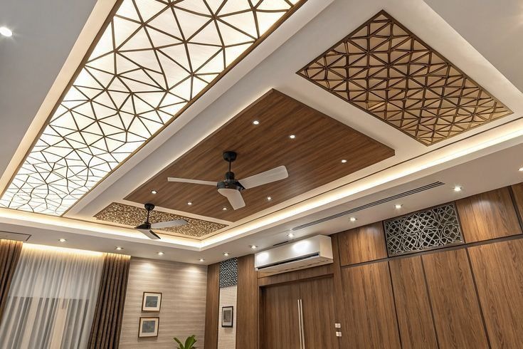 Our false ceiling designs add a touch of elegance and sophistication to every space while improving functionality and comfort. Crafted with precision using high-quality materials, they help manage lighting, conceal wiring, and enhance acoustic performance. Whether you prefer modern gypsum designs, wooden textures, or sleek minimalist patterns, our false ceilings are customized to suit your space and style. We focus on balanced proportions, creative lighting integration, and durable finishes to create a refined look that complements your interiors. Each design reflects innovation, craftsmanship, and attention to detail, transforming ordinary ceilings into stunning visual highlights.